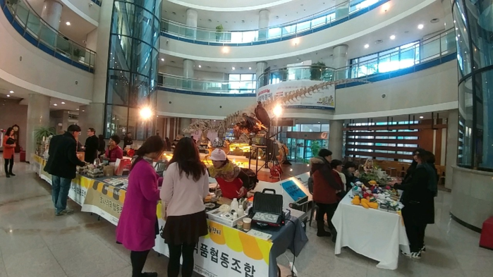 | ▲ 30일 경기도 화성시가 사회적경제 '소셜마켓'을 시청 로비에서 열고 있는 모습. |