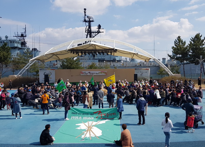 지난 24일 당진 신평면 삽교호 관광지에서 난타의 웅장한 공연에 이은 해오름풍물단의 농악으로 시작된 이날 게릴라 줄다리기에는 봄 주말을 맞아 이날 삽교호 관광지를 찾은 수 백 명의 관광객들은 서로 힘을 합심해 줄을 당기며 기지시줄다리기의 매력에 젖어 들었다.