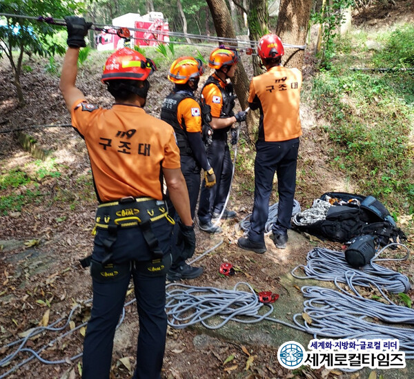 [세계로컬타임즈 조주연 기자] 전북 익산소방서가 가을철 산악사고 대비 인명구조훈련을 실시했다.