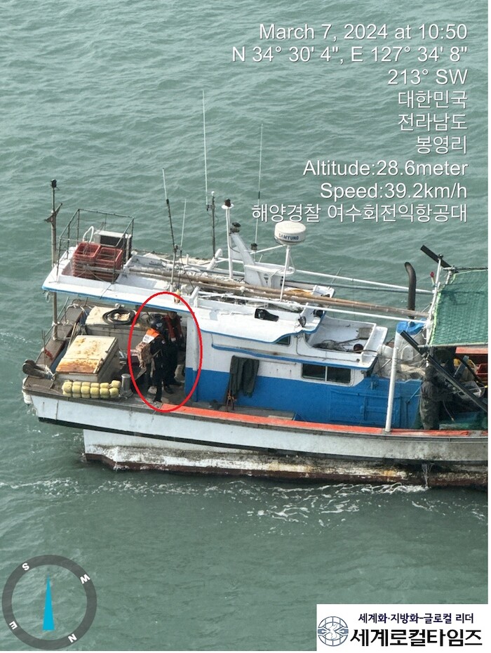 [세계로컬타임즈 김명진 기자] 서해지방해양경찰청 여수항공대는 지난 7일 전남 고흥군 나로도 인근 해상에서 항공순찰 중 승선원 변동 미신고 의심 선박을 발견하고 경비함정과 합동 단속을 실시, 승선원 변동 미신고 인원 1명을 검거했다고 밝혔다.