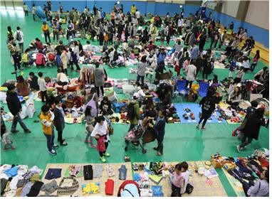 ▲ 오산시가 오는 16일 오산스포츠센터 2층 체육관에서 나눔장터를 연 다. 사진은 지난 나눔장터에서 시민들이 물건을 사고 파는 모습. 제공=오산시청> |