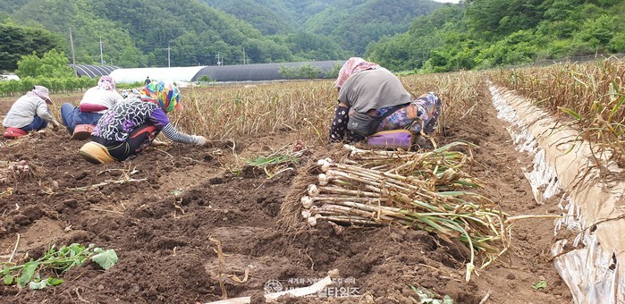 | ▲ 마늘 수확 모습(사진=단양군) |