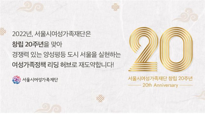 [세계로컬타임즈 이효진 기자] 서울시여성가족재단은 올해 창립 20주년을 맞아 새로운 혁신과 도약을 위한 ‘비전 선포식’을 21일 개최한다.