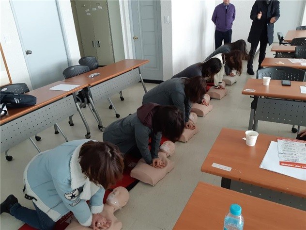심폐소생술(CPR) 교육은 응급처지 전문 교육센터의 도움을 받아 강사를 초빙하여 진행하였으며, 심폐소생술의 압박 위치, 압박 속도 등 심폐소생술의 이론을 습득하고 응급상황의 대처 방안 등의 실습이 진행됐다.