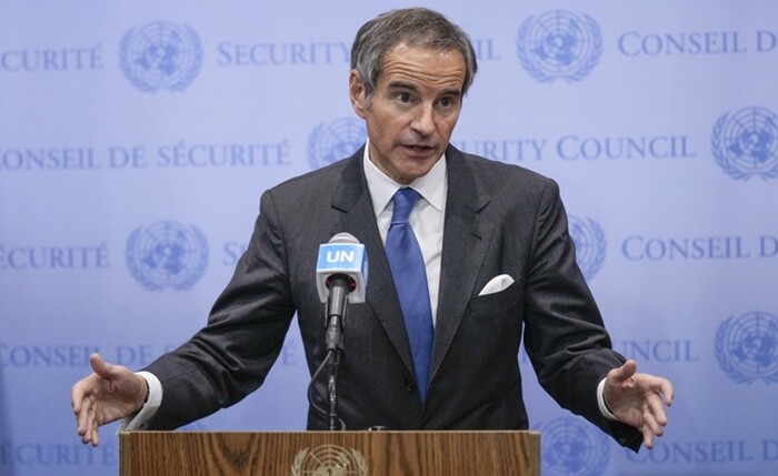 | ▲ 라파엘 그로시 IAEA사무총장이 지난 5월 미국 뉴욕 유엔본부에서 열린 안전보장이사회 후 기자회견에서 발언하고 있다.(사진=뉴시스) |