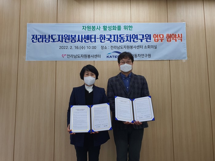 | ▲전남자원봉사센터-한국자동차연구원, 자원봉사 활성화 업무협약(사진=전남도) |