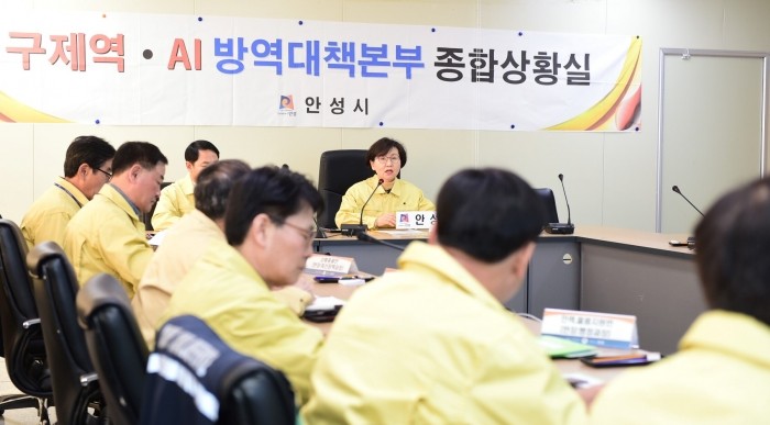 | ▲ 이화순 경기도 행정2부지사가 30일 안성시청에서 구제역 방역상황을 점검하고 있다.(사진=경기북부청 제공) |