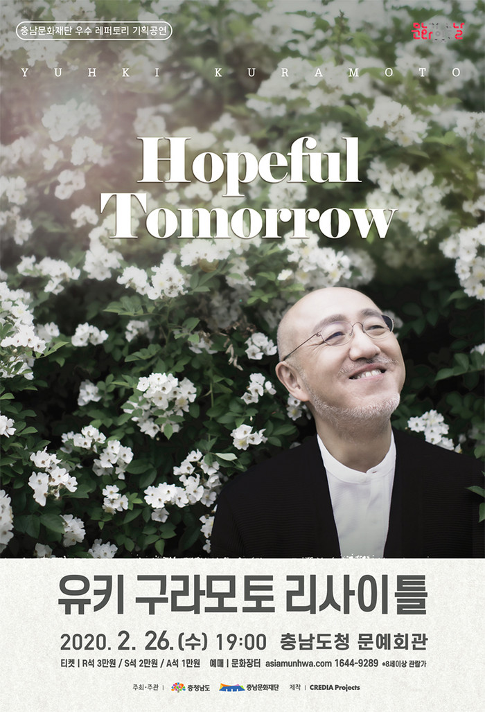 [세계로컬타임즈 홍윤표 조사위원] 충남문화재단은 우수 레퍼토리 기획공연으로 한국인이 가장 사랑하는 감성 피아니스트 유키 구라모토의 리사이틀을 개최한다.