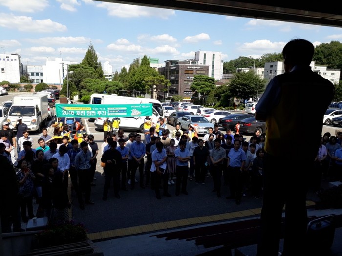 시청에서는 실외대피를 완료한 공무원들을 시청 앞 광장으로 이동시켜 지진위험으로부터 시민들의 생명과 안전을 지킬 수 있도록 옥외대피소 안내 등을 설명한 리플릿을 나눠주고 지진대피 행동요령에 대한 전문강사 교육을 함께 진행했다.