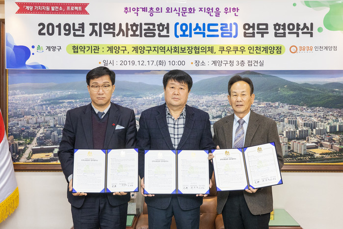 [세계로컬타임즈 유영재 기자] 인천 계양구는 계양구지역사회보장협의체와 외식업체 쿠우쿠우 인천계양점과 함께 취약계층 외식문화 지원을 위한 ‘외식드림’ 업무협약을 체결했다.
