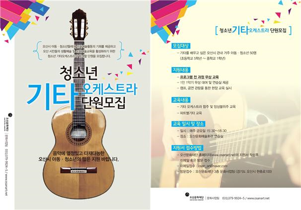 | ▲ 청소년 기타오케스트라 신규단원 모집 포스터.<사진제공=오산시청> |