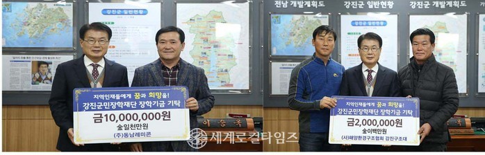 [세계로컬타임즈 이남규 기자] 전남 강진군에 새해 초부터 장학기금 기탁이 이어지고 있다.