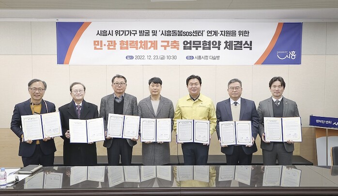 [세계로컬타임즈 박대명 기자] 시흥시는 지난 23일 시청 다슬방에서 위기가구 발굴 및 ‘시흥 돌봄SOS센터’ 연계 지원을 위한 민·관 협력체계 구축 업무협약을 체결했다고 밝혔다.