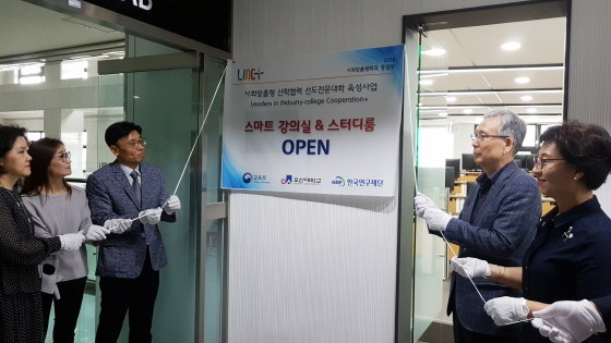 [세계로컬신문 최원만 기자] 오산대학교는 사회맞춤형 산학협력선도전문대학(LINC+) 육성사업 일환으로 교육환경 개선을 위해 구축한 첨단 스마트강의실 및 스터디 룸 오픈식을 개최했다.