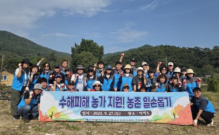 이날 공단 직원 30여 명은 현장을 찾아 ▲농로 보수, ▲전선로 복구, ▲예초 작업, ▲텃밭 김매기 등 다양한 복구 활동을 펼치며 피해 농가의 영농 정상화를 돕는 데 힘을 보탰다.
