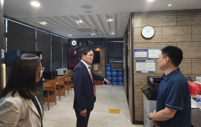 점검은 ▲계단·화장실 등 미끄럼 위험 요소 ▲옥상·난간 추락 위험 요소 ▲방화문 주변 적치물·소화기 비치 상태 ▲밀폐공간 및 위험 설비 관리 여부 등 생활안전 전반을 대상으로 진행됐다. 또한 ▲배수시설 관리 상태 ▲에어컨 실외기 화재 예방 ▲태풍 대비 외벽·시설물 낙하 방지 조치 등도 꼼꼼히 확인했다.