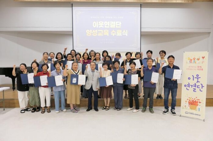 『이웃연결단』은 이웃의 안부를 확인하고 정서적 지지를 제공하며, 일상생활에 필요한 복지 서비스와 지역 자원을 안내해 안전하고 따뜻한 마을공동체를 만들고자 하는 주민 참여형 이웃 돌봄 봉사단체이다. 이번 교육을 수료한 『이웃연결단』은 9월부터 12월까지 역량 강화를 위한 보수교육, 외부 기관 우수 마을활동가 벤치마킹 워크숍, 간담회 등을 통해 이웃 돌봄 현장 실습 과정을 이어간다. 올 하반기에는 양성교육과 실습 과정을 마무리하고, 2026년부터는 도움이 필요한 이웃을 찾아가 안부를 확인하고, 말벗이 되어주며 필요한 정보를 제공하는 등 생활 속 돌봄을 실천할 예정이다.