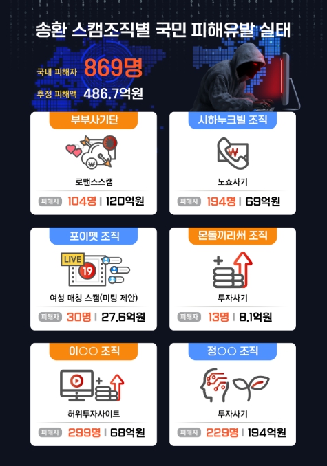 캄보디아 현지에 파견된 코리아전담반, 국정원, 현지 캄보디아 경찰 등은 장기간에 걸친 추적 끝에 스캠 단지 7곳을 확인하고, 작년 12월 시하누크빌 스캠조직 51명, 포이팻 스캠조직 15명, 몬돌끼리 스캠조직 26명 등을 검거하는 성과를 거뒀다.