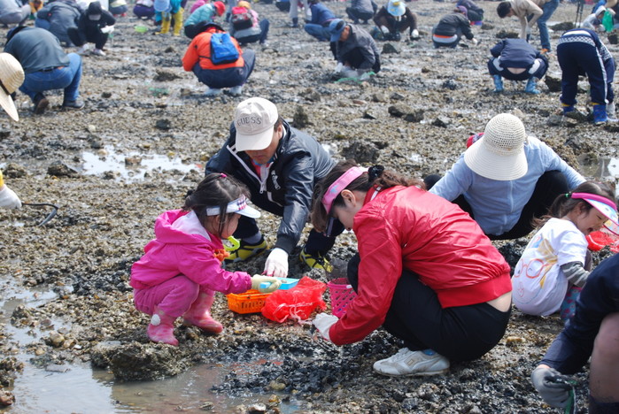 | ▲ 가족 단위 관광객들이 당진시 한진포구서 바지락갯벌체험을 하고 있다. <사진제공=당진시> |