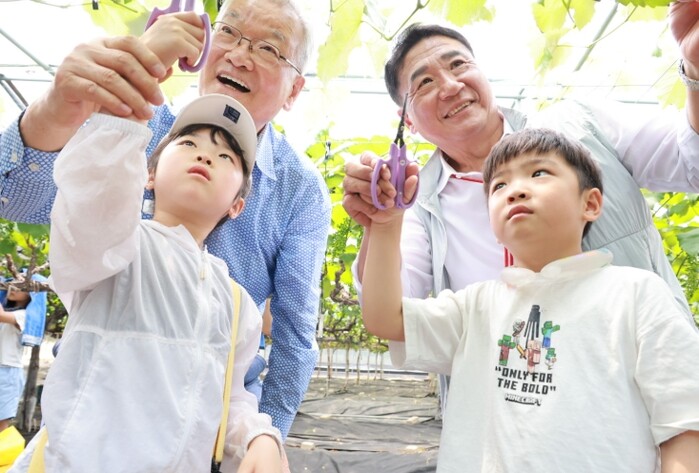 업무협약 체결 이후, 직원과 가족들은 포도 알솎기 체험을 통해 영동포도의 생산 과정을 직접 체험하는 시간을 가졌다.