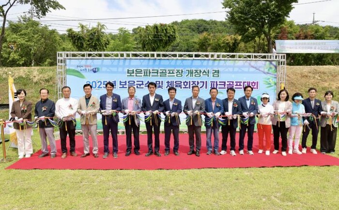 이번 대회는 생활체육 진흥과 지역 경제 활성화를 위해 마련된 것으로 최재형 보은군수, 보은군의회 윤대성 의장을 비롯해 윤갑진 체육회장, 방희진 보은군파크골프협회장 및 지역 주민 등 250여 명이 참석한 가운데 경과보고를 시작으로 기념사, 축사, 테이프 커팅, 시타, 시설 관람 순으로 진행됐다.