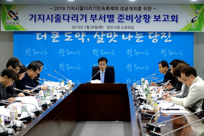 28일 당진시에 따르면 당진시와 기지시줄다리기보존회, 기지시줄다리기축제위원회는 당진시청에서 ‘2019 기지시줄다리기 민속축제’ 준비상황 보고회를 가졌다. 보고회에서는 지난해보다 다양하게 구성되는 올해 각종 행사 운영 방안과 각 부서별 지원 계획을 점검하는 시간을 가졌다.