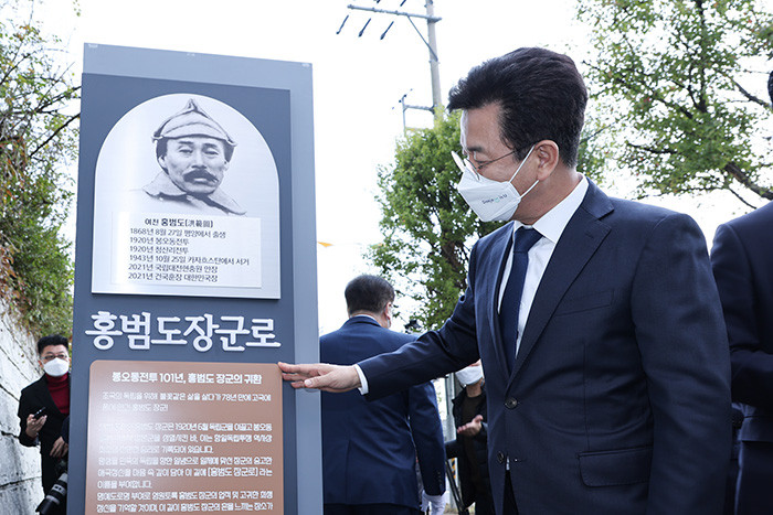 허 시장은 “홍범도 장군로 명예도로명은 우리 시민들의 자긍심과 애국심을 불러일으키고 홍범도장군의 고귀한 정신을 이어가는 계기가 될 것”이라며 “시민에게 널리 알려지고 불러지며 사랑받는 명예도로명이 되길 바란다”고 말했다.