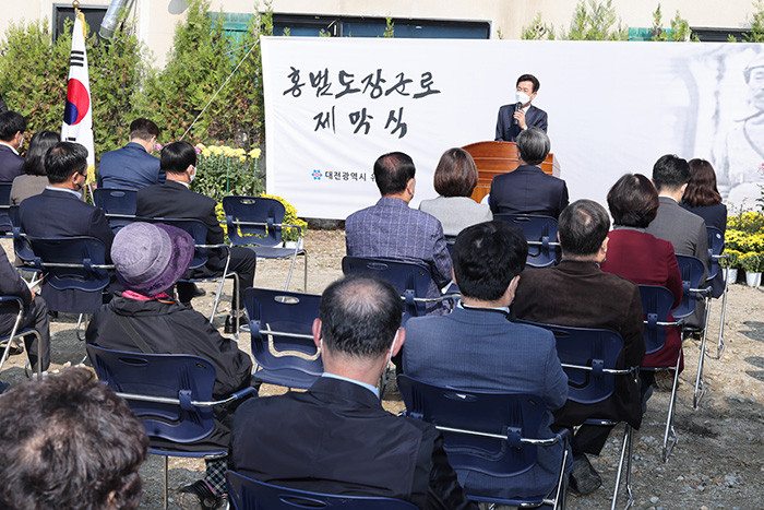 [세계로컬타임즈 민순혜 기자] 허태정 대전시장은 지난 19일 대전 갑동 현충원역일원 홍범도장군로 제막식에 참석해 홍범도 장군의 공적을 기렸다. 홍범도 장군로는 현충원역부터 현충원입구까지 약 2Km 구간이다.