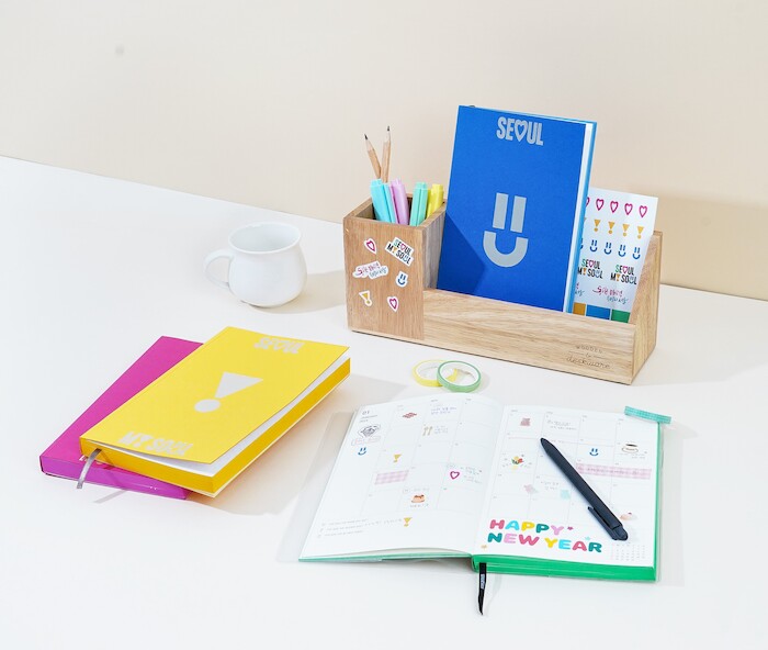 선명하고 감각적인 ‘SEOUL, MY SOUL(서울, 마이 소울)’ 브랜드 스티커도 동봉돼 사용자가 취향껏 다이어리를 꾸밀 수도 있다.