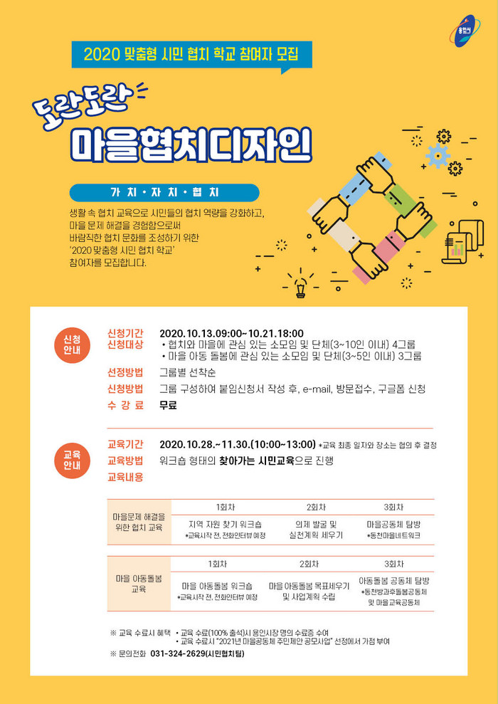 | ▲ '2020 맞춤형 시민 협치 학교 참여자 모집' 홍보 포스터. (자료=용인시 제공) |