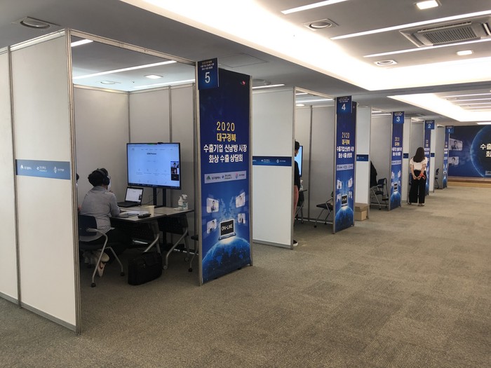 | ▲ 대구무역회관에서 열린 ‘대구경북 수출기업 신남방시장 화상 수출상담회’장에 화상상담 부스가 설치돼 있다.(사진=대구시 제공) |