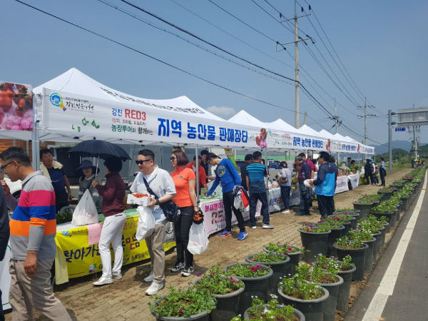 15일 강진군에 따르면 지난 13일부터 이틀간 칠량면 농공단지 부근에서 농장투어와 함께 이동 직거래장터를 운영했다.