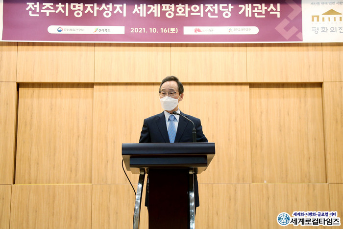 | ▲세계평화의전당 개관식에서 축사를 전하는 송하진 전북도지사 ⓒ전북도 |