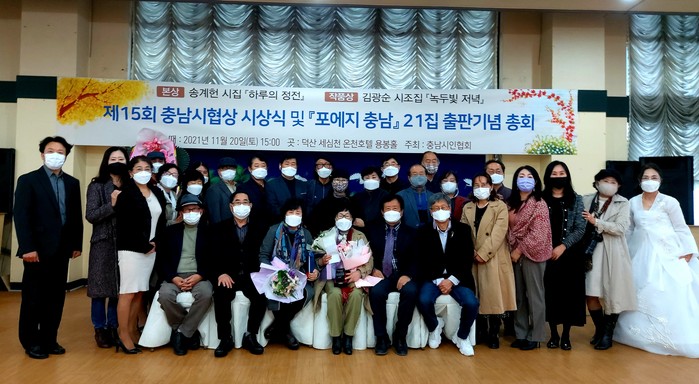 한편 이번 시상식 수상자는 송계헌 시인의 '하루의 정전'이 본상을, 김광순 시조시인의 '녹두빛 저녁'이 작품상으로 선정돼 상패와 상금을 받았다. 충남시인협회는 당진시 출신이자 현 대한민국 예술원 이근배 회장의 뜻을 모아 2005년 창립해 179명의 충남도 출신시인들이 참여해 오늘에 이르고 있다.