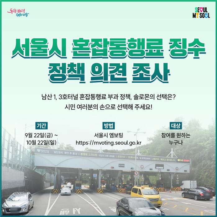 [세계로컬타임즈 이효진 기자] 서울시가 혼잡통행료 징수 및 운영 방향에 대한 온라인 시민 투표를 실시한다.