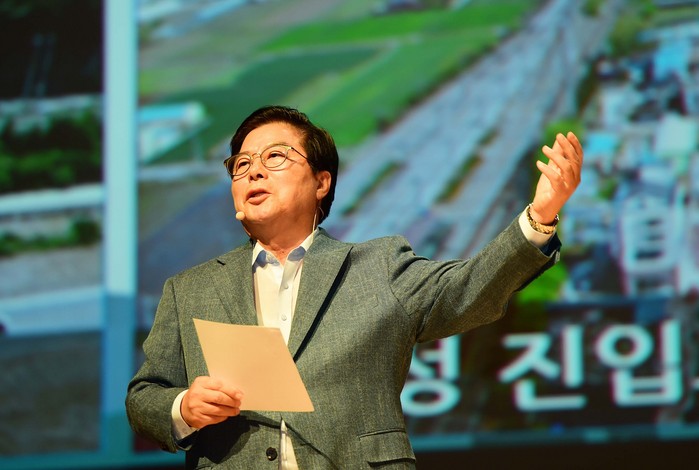 | ▲ 유두석 장성군수가 3일 장성문예회관 대공연장에서‘민선 7기 장성군 군정로드맵’을 발표하고 있다. (사진=장성군청 제공) |