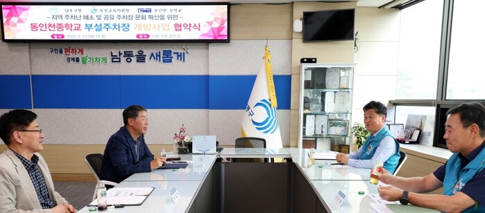 구는 지난 23일 구월3동 동인천중학교 부설주차장 개방사업 협약식을 열고, 학교 부설주차장(구월남로 57번길 12, 약 339㎡)을 주민들에게 제공하기로 했다.