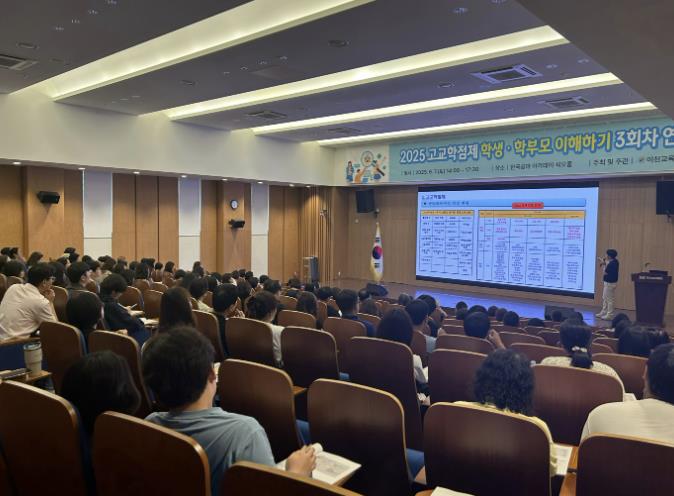 연수 2부는 현 EBS 입시 대표강사로 활동 중이면서 소명여자고등학교에 재직 중인 김진석 교사의 강의로 꾸려졌다. 2028 대입개편안이라는 대주제로 진행된 연수에서는 2025부터 2028 대입개편안 전체를 아우르는 폭넓은 안내가 이뤄졌다. 특히 학부모 입장에서 ‘내 자녀에게 가장 적합한 전형을 파악하고, 전략을 세우는 것’의 중요성을 일깨워주었다는 평가를 받았다.
