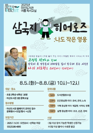 이번 독서교실은 삼국지 속 다양한 인물들의 선택과 행동을 탐구하며, 어린이들이 스스로 ‘작은 영웅’이 되는 방법을 배울 수 있도록 기획됐다. 강의는 ‘까칠한 재석이’ 시리즈로 유명한 고정욱 작가가 진행한다.