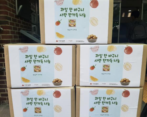과일바구니는 지역 전통시장에서 구매한 사과, 참외, 바나나, 하우스귤 등으로 구성됐다.