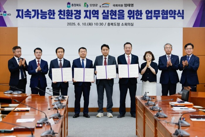 군에 따르면 지난 10일 한국수자원공사(K-water)와 충청북도, 국회의원 등과 함께 ‘지속가능한 친환경 지역 실현을 위한 업무협약’을 체결했다.