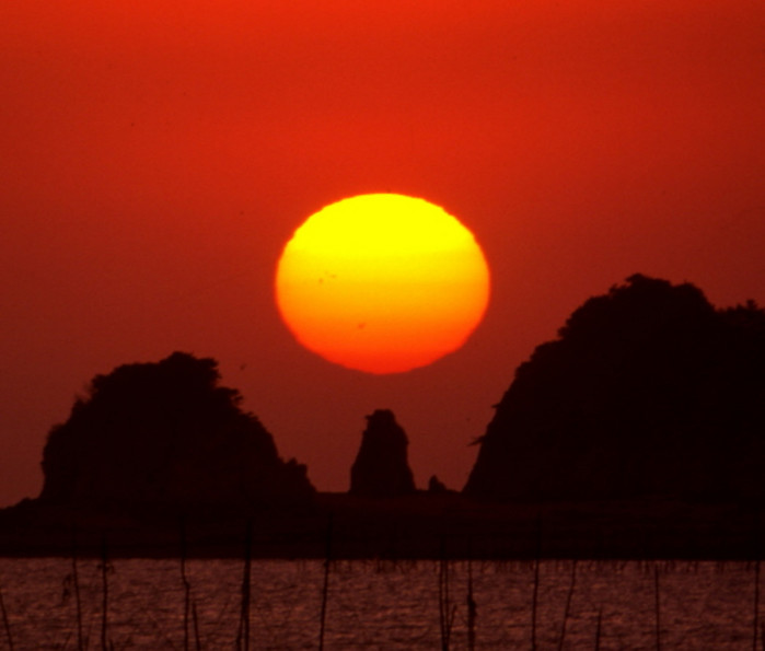 왜목마을은 서해바다로 가늘고 길게 뻗어나간 특이한 지형 때문에 서쪽임에도 바다의 일출과 일목을 모두 감상할 수 있어 '해 뜨고 지는 마을'로 유명하다.