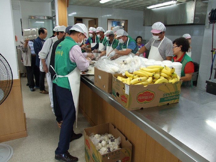 [세계로컬신문 이종학 기자] 새마을지도자제천시협의회(회장 노병진)가 추석명절을 맞아 지난 28일 제천시노인회관에서 200여명의 어르신들을 대상으로 ‘추석맞이 사랑의 급식봉사’ 활동을 전개했다.