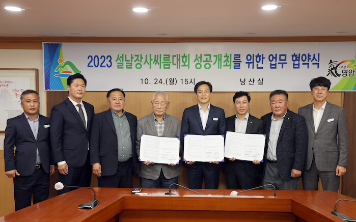 이날 협약식에는 우승희 영암군수, 황경수 대한씨름협회장, 이봉영 영암군체육회장, 김남수 영암군씨름협회장, 김기태 영암군민속씨름단 감독 등이 참석하여 성공적인 대회 개최를 위한 긴밀한 협조체계 구축을 다짐했다.