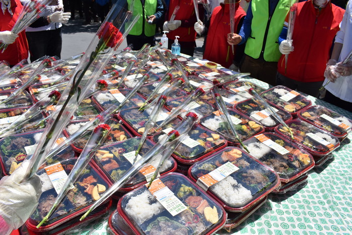 한편, ‘안녕한 한 끼 드림’ 사업은 NH농협 후원으로 한국중앙자원봉사센터 주최, 15개 광역시도자원봉사센터가 주관하며, 267개소에 20억원 상당의 40만개 도시락 및 생수를 무료급식소 등 취약계층에게 제공하는 사업으로 당일 제작 배부하며 잔여 수량은 폐기한다.