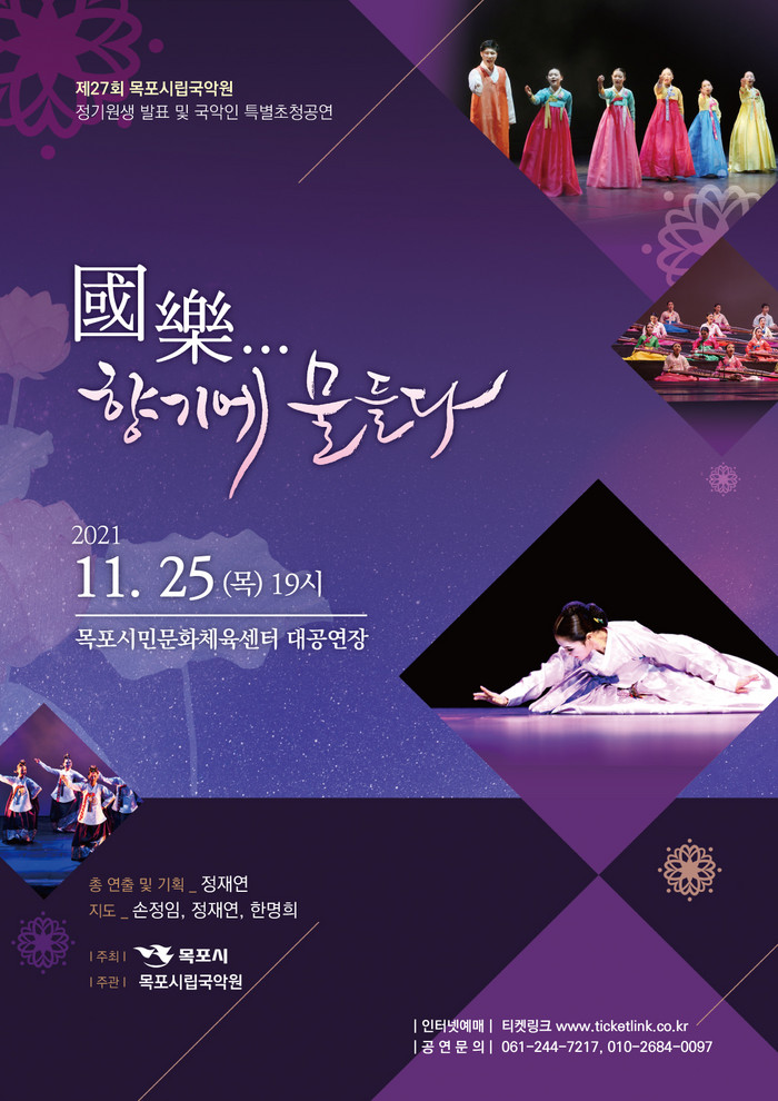 이번 공연은 목포시립국악원의 무용 정재연 교수, 성악 손정임 교수, 기악 한명희 교수 등이 지도했으며 인터넷 티켓링크 사전예매를 통해 관람할 수 있다.