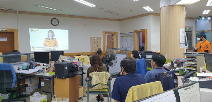 28일 시에 따르면 이번 합동 소방훈련은 코로나19의 지속적인 유행으로 관계인 접촉을 최소화하기 위해 소화, 화재통보, 피난 및 응급처치법이 포함된 동영상 등 시청각 자료를 활용한 간접체험식 훈련으로 실시됐다.