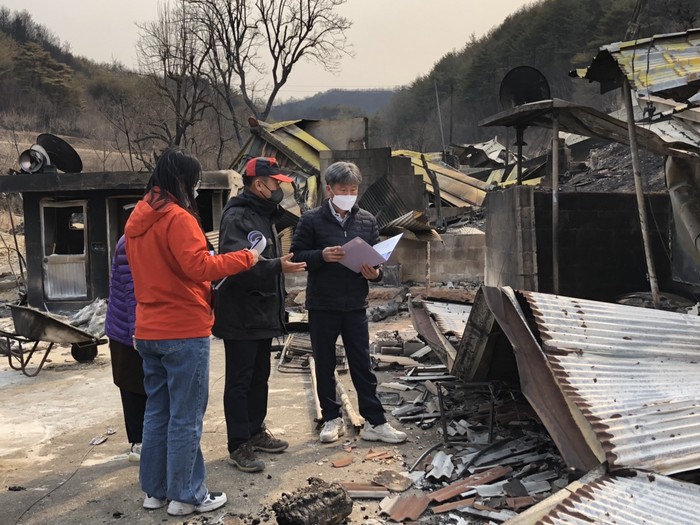 경북도와 울진군은 산불 발생 직후부터 긴밀한 공조체계를 구성해 피해조사를 진행했고, 조사결과를 국가재난관리시스템(NDMS) 입력 및 신축·재축 방법 등 관련규정 자문을 위해 도청 건축직 공무원을 산불피해 현장에 상주시켰다.