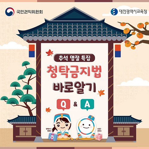 [세계로컬타임즈 민순혜 기자] 대전광역시교육청은 직원들이 추석명절에 사회상규상 가능한 선물을 주고받는 과정에서 '부정청탁 및 금품 등 수수 금지에 관한 법률(이하 청탁금지법)'의 위반여부 판단을 이해하기 쉽게 주요 질의사항을 카드뉴스로 배부했다.