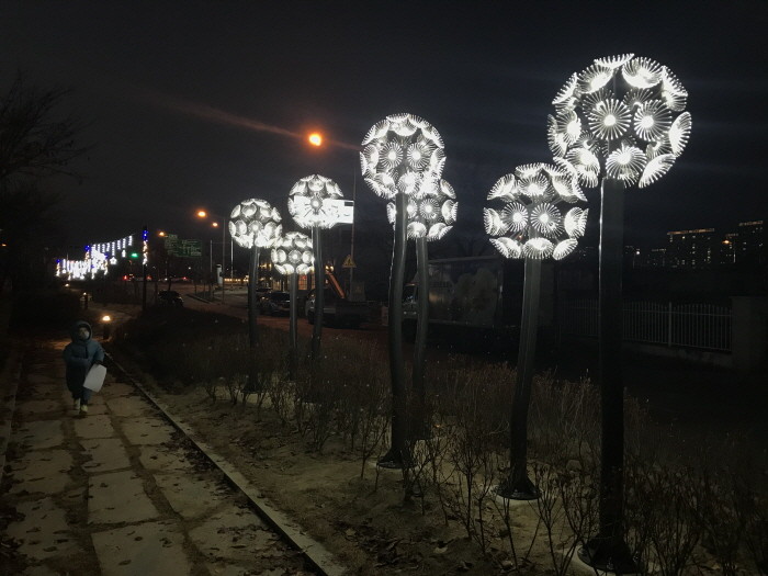 | ▲양주시는 고읍 장거리 교차로 인근 벚꽃 도시숲 산책로 공원에 경관조명을 설치, 아름다운 빛으로 코로나19에 지친 시민에게 힐링의 공간을 제공하고 있다. (사진=양주시 제공) |